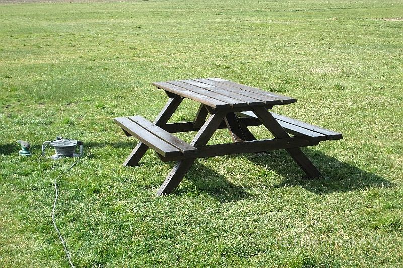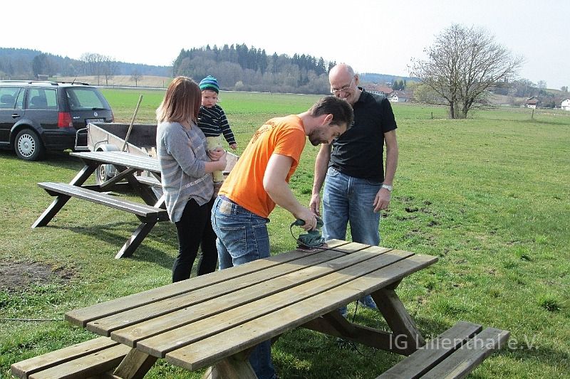 Parallel wurde eine der beiden Bänke abgeschliffen. Dank unseres Stromaggrrgates musste das nicht von Hand erledigt werden.