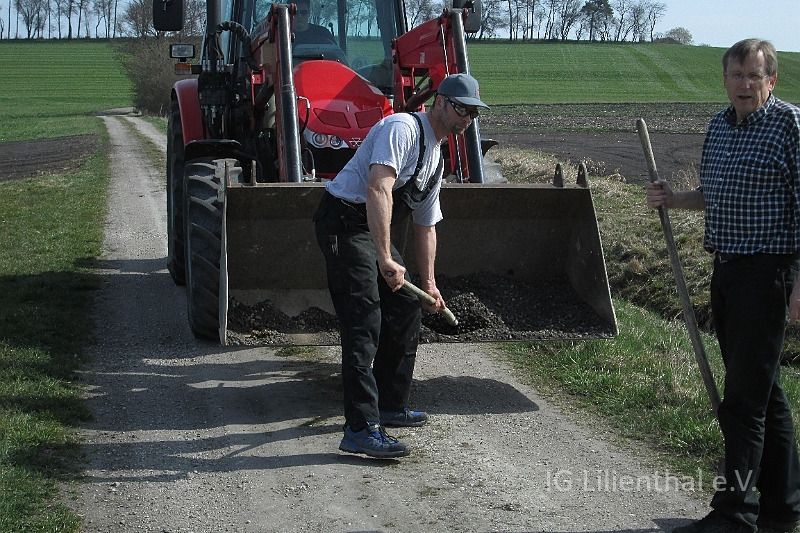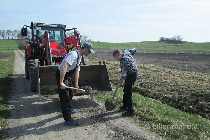 Weiter ging es mit dem Schließen der Schlaglöcher: dank dieser Schaufel war das Füllmaterial direkt dort wo es hin sollte.