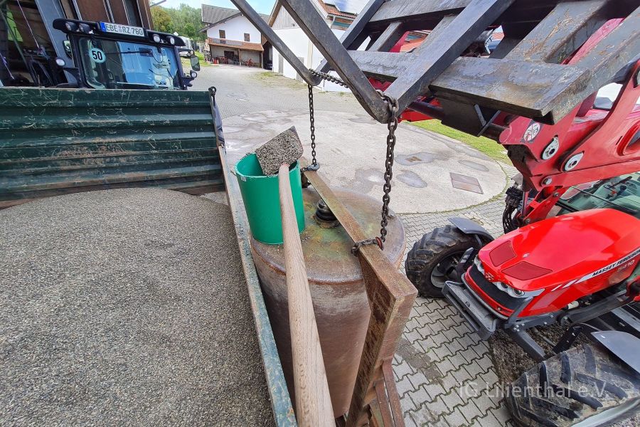 Nach langer Suche wurde endlich eine große Walze beschafft. Dazu besonderen Dank an Robert Z., der hier eine sehr günstiges Angebot schnell angenommen hat. Und so konnte der Arbeitstag am 27. April 2024 genutzt werden, um am Ende effizient gegen die Wühlmäuse vorzugehen, weitere Senken aufzufüllen und generell die Piste weiter einzuebenen und zu stabilisieren.