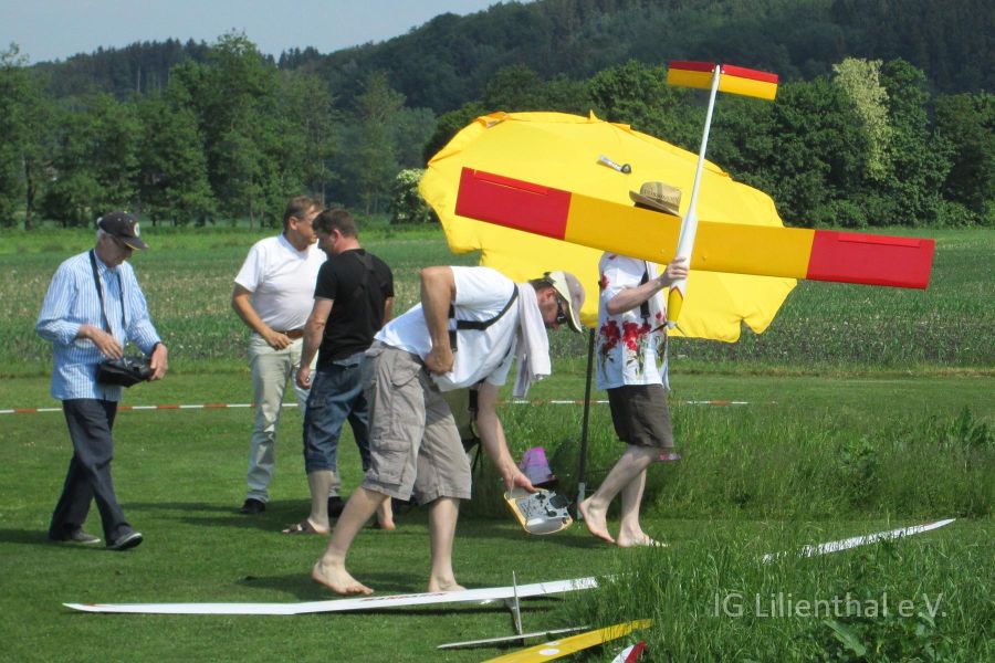 Eigentlich finden unsere Traditionswettbewerbe Pokal- und Langzeitfliegen irgendwann im Mai statt - zu dieser Jahreszeit gibt es normalerweise die beste Thermik. Wie jeder weiss hat es da aber nur intensiv geregnet und anschliessend war es so heiss, dass sich niemend längere Zeit der Sonne aussetzen wollte. Daher war der 21. September der letzte mögliche Tag und wir hatten glücklicherweise akzeptables Wetter. Andernfalls wären beide Wetbbewerbe für dieses Jahr ausgefallen.