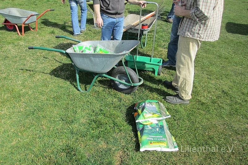 In der Zwischenzeit war der Sand geglättet und Rasensamen und Dünger konnten ausgebracht werden.