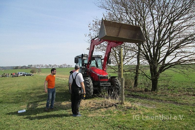 Und wieder kommt unser vierrädriger Helfer zum Einsatz - hier beim Einrammen der Pfähle . . .