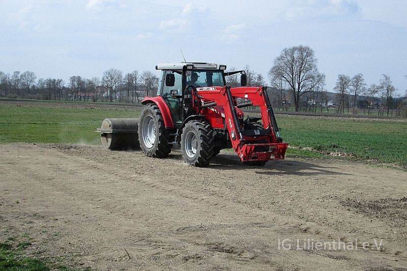 Ganz zum Schluss wurde die ganze Piste nochmals gewalzt (der Nachbarbauer hatte uns mal schnell seine Walze ausgeliehen).