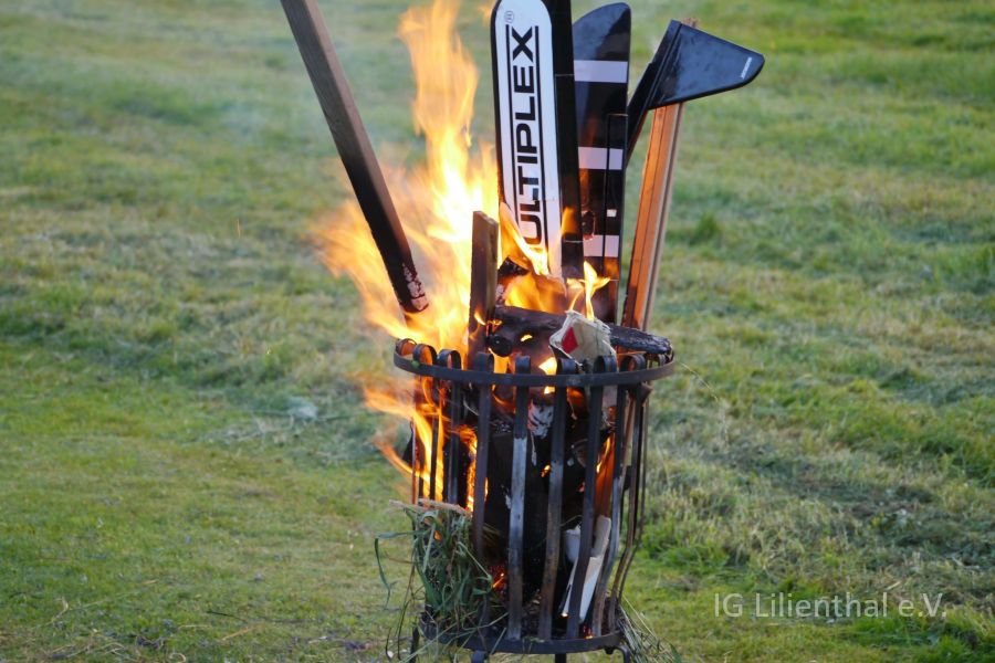 Und der Flieger endete als "Anmachholz" für's Lagerfeuer.