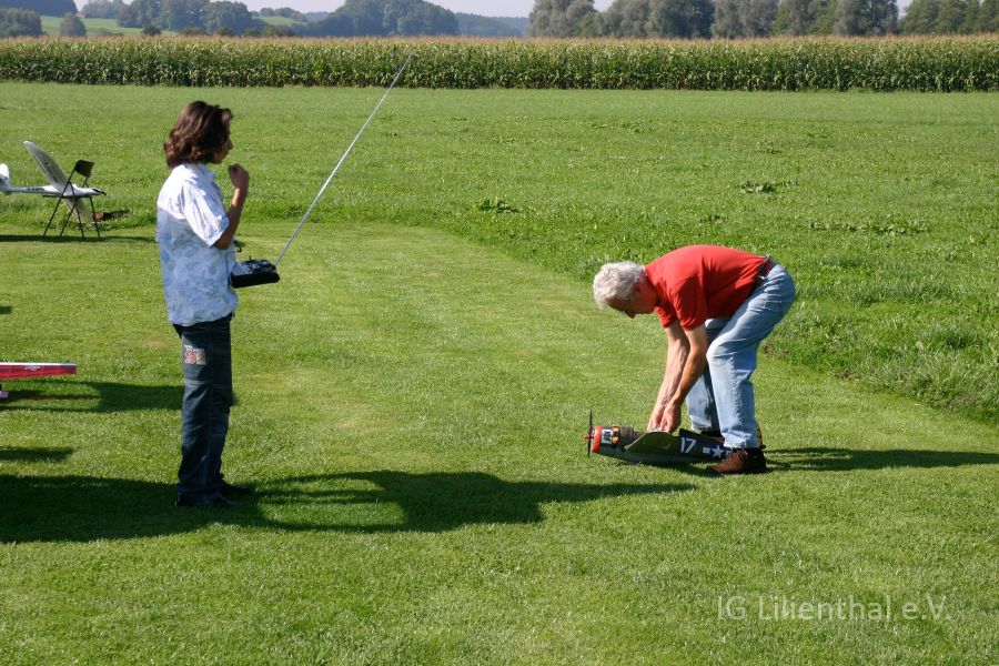 Hier der wirkliche Pilot mit dem Flieger.
