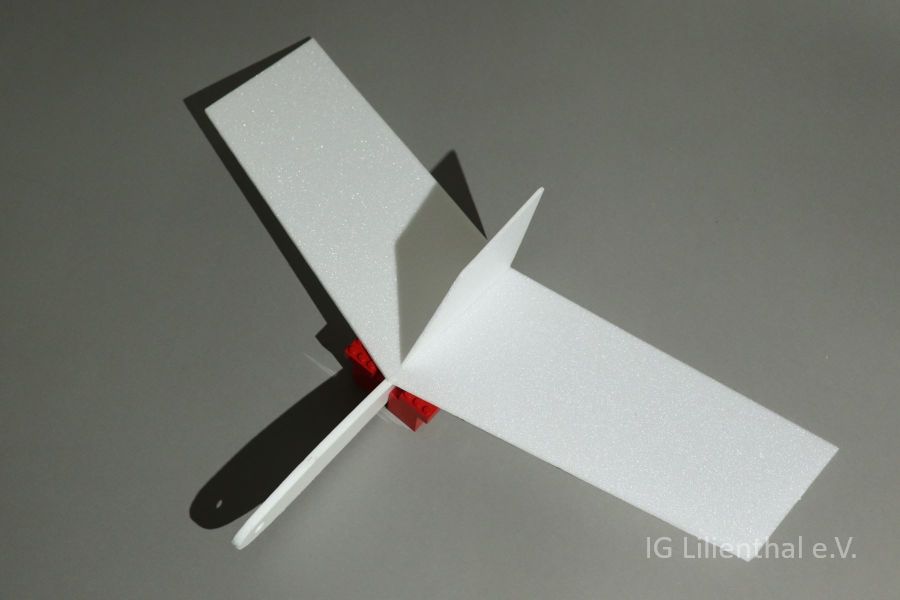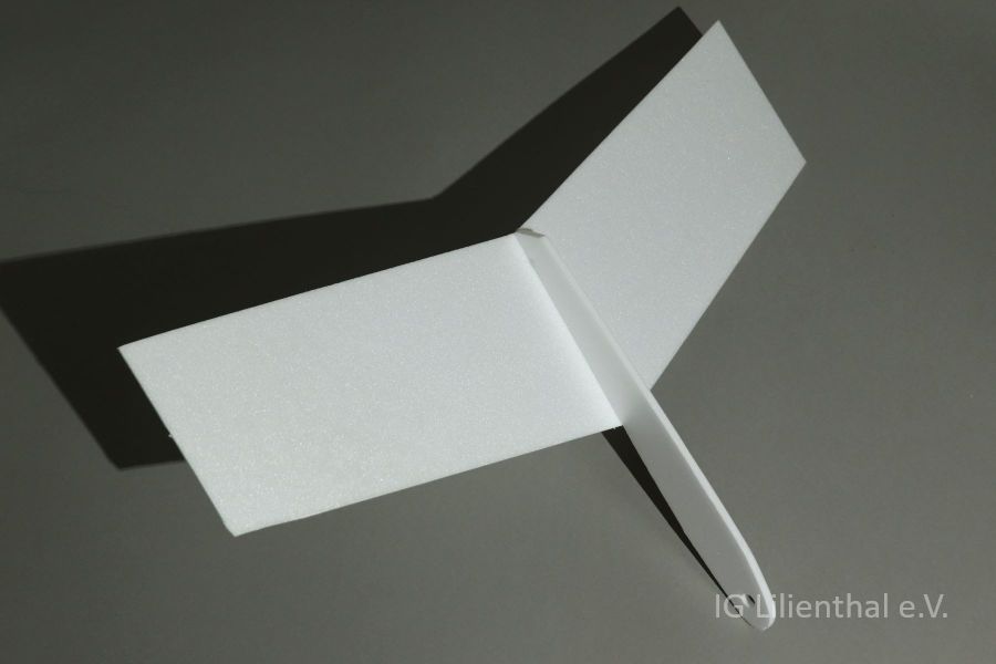 Als Erstes ein sehr einfacher Wurfgleiter, der beim Ferienprogramm 2022 gebaut wurde.