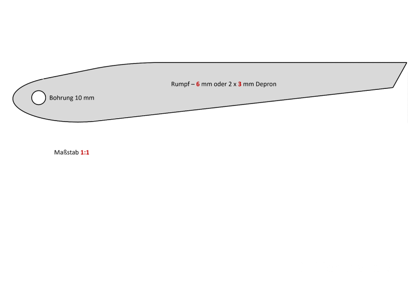 Für den Rumpf 6 mm Depron verwenden oder zwei Lagen á 3 mm aufeinander kleben.