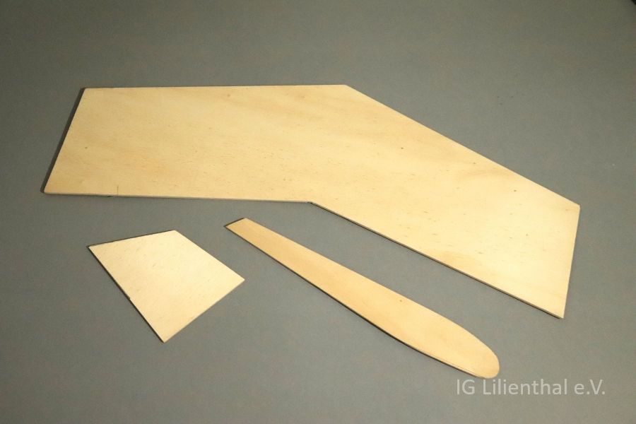 Wer nicht nur einen Gleiter bauen möchte sollte sich vorher entsprechende Sperrholzschablonen anfertigen. Das erleichtert das Schneiden der 3 Teile ganz erheblich.