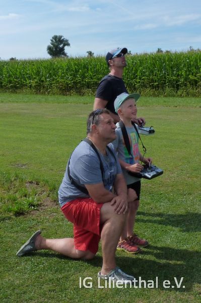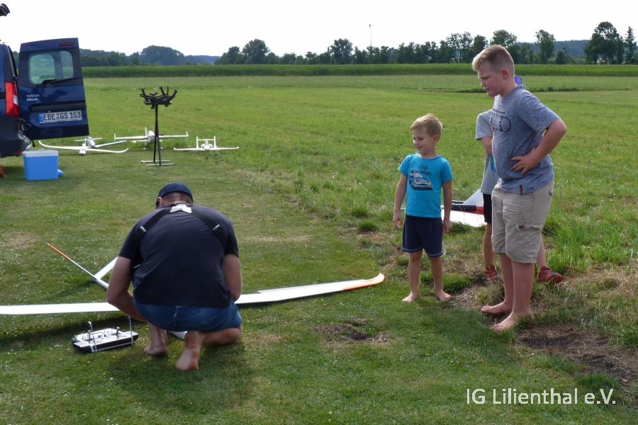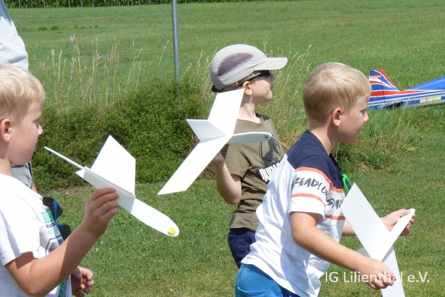 Angefangen wurde mit dem Selbstliegen unter Anleitung von Vereinsmitgliedern. Anschließend wurde entweder gebastelt, der Flugplatze mit Hilfe einer kamerabestückten Drohen und einer FPV-Brille von oben betrachtet, den vielen Modellen beim Fliegen zugeschaut und auch selbst mit Wurfgleitern gespielt. Einige sind zwischendurch nochmals mit Modellfliegern geflogen.