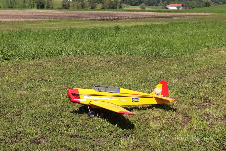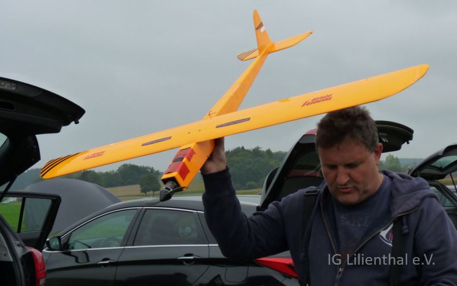 Am 7. April hat Wolfgang dann einen Segler von Robert F. geschleppt. Segler ist LO 100 von Eismann-Modellbau; Spannweite 2,5 m; Gewicht ~ 5kg |